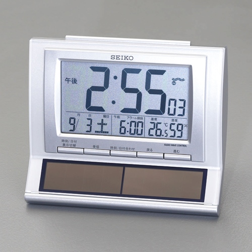 目ざまし時計の温湿度表示つきハイブリッドソーラー