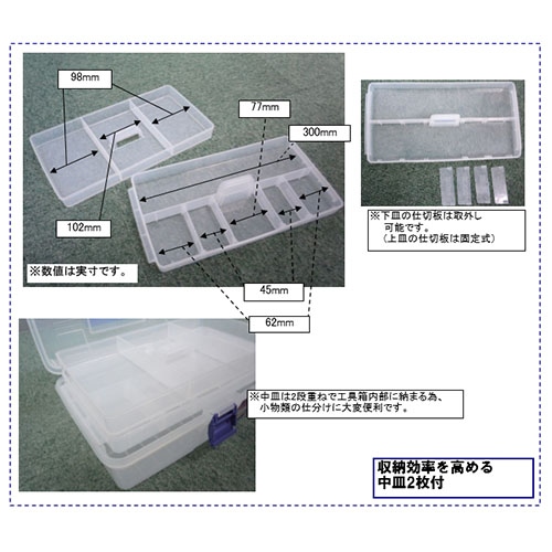 ●外寸…342×211×161(H)mm●内寸…305×163×78(H)mm●材質…ポリプロピレン(耐衝撃性コポリマー)●重量…1.0kg●中皿2枚付●中皿は2段重ねが可能。小物の仕分けに便利です。●大阪デザインセンター選定商品●参考在庫数・商品詳細・サイズ情報はメーカー(参考)URLからもご確認いただけます。 ●最小出荷単位: 1