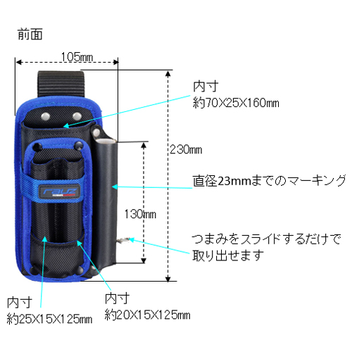 ●材質…本体:ナイロンベルト通し:ポリプロピレン●サイズ(mm)…105×50×230●ベルト幅…70mm●重量(g)…175●使用上の注意…火の近くでの使用は避けてください。 跳ねたり、走ったりする場合は使用しないでください。 体重のかかる使い方は絶対にしないでください。●直径23mmまでのマーキングチョーク収納可能、つまみをスライドするだけで取り出せます。●参考在庫数・商品詳細・サイズ情報はメーカー(参考)URLからもご確認いただけます。 ●最小出荷単位: 1