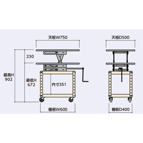 EA956KD-1 600x400x677-907ワゴン昇降天板