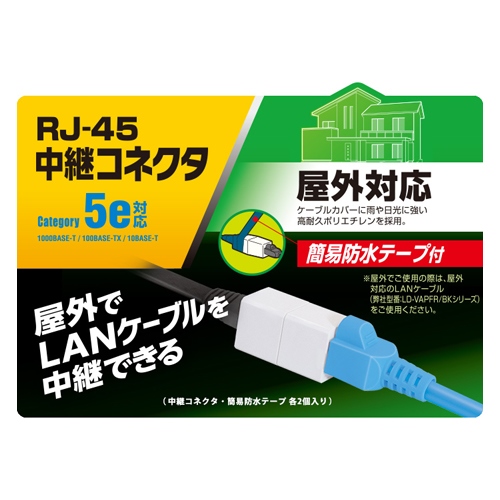 ●メーカー…エレコム●型番…LD-VAPFR/RJ45WP●カテゴリー5e準拠●RJ45中継コネクタ2個、簡易防水テープ2個●コネクタサイズ…14.7×29.8×16.3(H)mm●簡易防水テープ長…50cm●屋外用LANケーブル(EA764BF-110~-130)と、すき間用LANケーブル(EA764BF-200)を中継するのに最適です。 ●最小出荷単位: 1