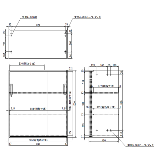 EA954DJ-26 900x450x1030mm3枚引キ戸書庫