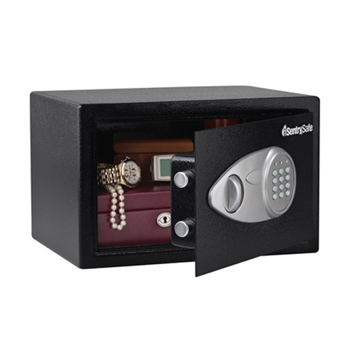 ●メーカー…セントリー●型番…X055●内容量…15.0L●重量…8.8kg●サイズ…外寸:350(W)×270(D)×220(H)mm、 内寸:346(W)×200(D)×216(H)mm●電源…単3電池4本(別売)●付属品…強制解除キー2本、ボトルダウンキット●材質…スチール●B5サイズ収容可●強固な作りと、頑丈なロックボルトで大切なものをしっかりと守ります。●固定具(ボルトダウンキット)で床や壁に固定することも可能。安心をさらに高めることもできます。固定具は標準で付属しています。●2桁~8桁まで暗証番号を自由に設定できるテンキー式。暗証番号は何回でも変更可能なため、定期的なセキュリティー対策にも対応します。●耐火性能はありません。●クールなブラックカラーで、ご家庭からプライベート空間を大切にするホテルや病院まで幅広くご使用いただけます。●参考在庫数・商品詳細・サイズ情報はメーカー(参考)URLからもご確認いただけます。 ●最小出荷単位: 1