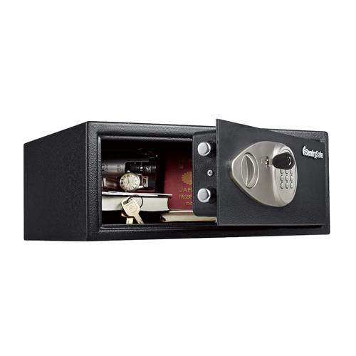 ●メーカー…セントリー●型番…X075●内容量…24.0L●重量…10.9kg●サイズ…外寸:430(W)×370(D)×180(H)mm、内寸:426(W)×320(D)×176(H)mm●電源…単3電池4本(別売)●付属品…強制解除キー2本、ボトルダウンキット●材質…スチール●A4サイズ収容可(小型のノートパソコンも収納できます)●2桁~8桁まで暗証番号を自由に設定できるテンキー式●強固な作りと、頑丈なロックボルトで大切なものをしっかりと守ります。●固定具(ボルトダウンキット)で床や壁に固定することも可能。安心をさらに高めることもできます。固定具は標準で付属しています。●2桁~8桁まで暗証番号を自由に設定できるテンキー式。暗証番号は何回でも変更可能なため、定期的なセキュリティー対策にも対応します。●耐火性能はありません。●クールなブラックカラーで、ご家庭からプライベート空間を大切にするホテルや病院まで幅広くご使用いただけます。●参考在庫数・商品詳細・サイズ情報はメーカー(参考)URLからもご確認いただけます。 ●最小出荷単位: 1