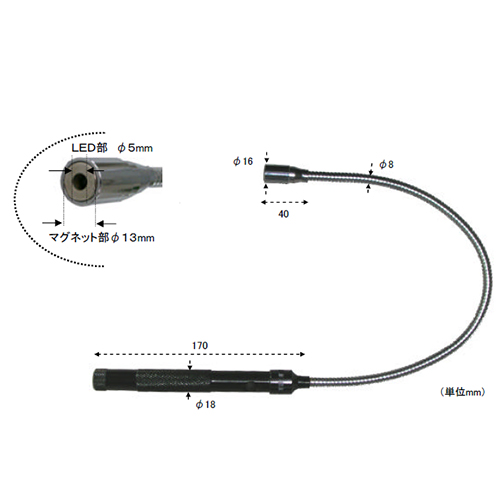 ●LEDライト付●フレキシブルシャフト長…405mm●吸着能力…約0.9kg●全長…580mm●電源…単3電池2本(別売)●材質…フレキシブルシャフト:スチール、LED部:ステンレス、ハンドル:アルミ●参考在庫数・商品詳細・サイズ情報はメーカー(参考)URLからもご確認いただけます。 ●最小出荷単位: 1