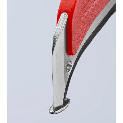 ●メーカー…KNIPEX(クニペックス)●型番…9855●全長…180mm●刃長…38mm●刃の半径…23.5mm●重量…68g●保護キャップ付●ブレードの先端にガイドシューが付き、絶縁に傷をつけない。●固定タイプの鎌形フックブレード●DIN EN/IEC 60900:2004基準に適合したVDE絶縁テスト済みです。●人間工学に基づいた安全ハンドル●ブレード材質は、真空硬化されたサージカルスチール、ステンレス●1000V絶縁●参考在庫数・商品詳細・サイズ情報はメーカー(参考)URLからもご確認いただけます。 ●最小出荷単位: 1