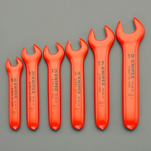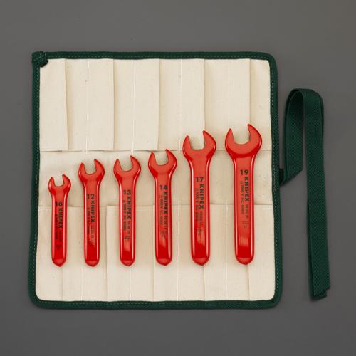 ●メーカー…KNIPEX(クニペックス)●型番…※ESCOオリジナルセット品●<セット内容>…・絶縁片口スパナ6本・ツールロール●絶縁片口スパナ(サイズ)…10・12・13・14・17・19mm●【絶縁片口スパナ 仕様】・10mm…全長:105mm、ヘッド部厚み:5.0mm・12mm…全長:125mm、ヘッド部厚み:5.5mm・13mm…全長:130mm、ヘッド部厚み:6.5mm・14mm…全長:135mm、ヘッド部厚み:6.5mm・17mm…全長:155mm、ヘッド部厚み:8.0mm・19mm…全長:165mm、ヘッド部厚み:9.0mm・材質…クロームバナジューム鋼、クロームメッキ仕上げ・15°オフセット・1000V絶縁●【ツールロール 仕様】・サイズ…300×300(H)mm・材質…キャンバス生地・ポケット数…10●参考在庫数・商品詳細・サイズ情報はメーカー(参考)URLからもご確認いただけます。 ●最小出荷単位: 1
