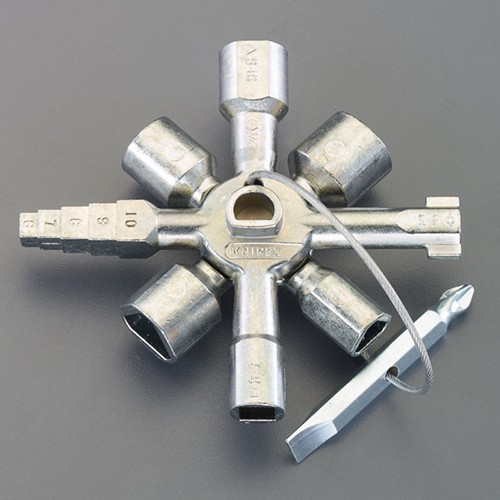 ●メーカー…KNIPEX(クニペックス)●型番…00 11 01●四角(凹)…5・6~7・8~9・10~11mm●四角(凸)…(5段)6・7・8・9・10mm●三角(凹)…7~8・9~10・11~12mm●かぎ型(ダブルビット)…3~5mm●半丸…6mm●全長…95mm●重量…135g●ビット差込六角対辺(マグネット付)…1/4’’●ビット…(+):#2、(-):1.0×7mm●材質…亜鉛ダイカスト、ニッケルメッキ●建設技術(ヒーターおよび衛生設備、空調技術、電気技術)、ガスおよび水道設備の分野のロックシステムの操作に使用する多機能キー。●8アームバージョン●2つのクロスキーから構成されており、マグネットによってコンパクトに連結されています。●分離することができます。●キーとリバーシブルビットとは、頑丈なステンレス製ワイヤーロープでつながれています。(取り外し可能))●参考在庫数・商品詳細・サイズ情報はメーカー(参考)URLからもご確認いただけます。 ●最小出荷単位: 1