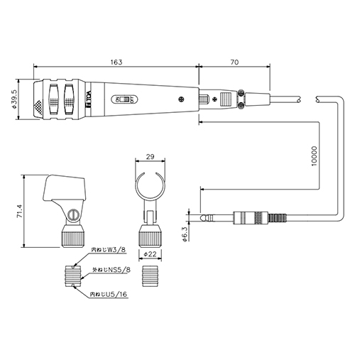 ●メーカー…TOA●型番…DM-1200●単一指向性●形式…ムービングコイルマイク●定格インピーダンス… 600Ω 平衡●定格感度レベル…-52dB(1kHz 0dB=1V/Pa)●周波数特性…50~12000Hz●トークスイッチ…スライド式 ショートオフ型●材質… ボディー:亜鉛ダイカスト メタリックグレー 塗装 ヘッド:アルミダイカスト、亜鉛めっき鋼線 メタリックグレー 塗装●サイズ(頭径×全長)…φ39.5×163mm(出力コード部除く)●重量…298g(出力コード部除く)●コード長…10m●付属品… マイクホルダー(U5/16,NS5/8,W3/8)×1 出力コード(1心シールド線 不平衡 10m 黒 半艶 キャノンXLR-3-11C相当品 対 単式ホーンプラグ)×1●学校・企業などの説明会などに最適●参考在庫数・商品詳細・サイズ情報はメーカー(参考)URLからもご確認いただけます。 ●最小出荷単位: 1