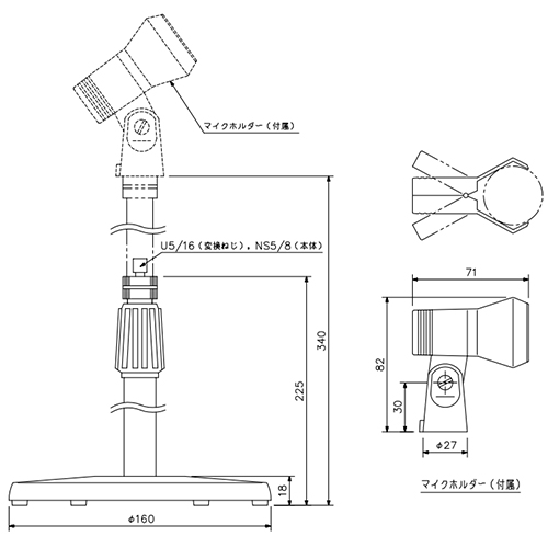 ●メーカー…TOA●型番…ST-66A●高さ(マイクホルダー含まず)…225~340mm●取付マイク径…18~35mm●取付マイク重量…500g●ネジ部…変換ネジ:U5/16 内パイプネジ:NS5/8●重量…約1.1kg●付属品…クリップ式マイクホルダー×1●最大φ35mmのマイクまで保持できるクリップ式マイクホルダー付、取外も可能●2段式で高さが225~340mmまで無段階調整可能●参考在庫数・商品詳細・サイズ情報はメーカー(参考)URLからもご確認いただけます。 ●最小出荷単位: 1