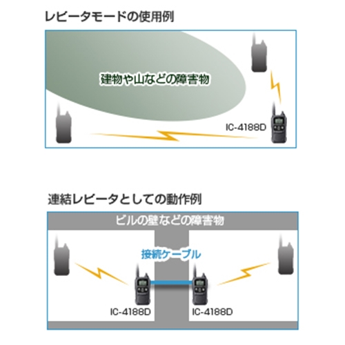 ●メーカー…アイコム(ICOM)●型番…IC-4188D●免許・資格不要●同時通話27ch+中継通話27ch+交互通話20ch●出力…10mW/1mW●連続使用時間(アルカリ)…約60時間●電源…単3電池×3本(別売)(EA758YA-3A)●サイズ…55.5(W)×27.3(D)×102.5(H)mm●重量…約154g●IP54●付属品…ベルトクリップ●充電式でご使用の際はEA790AF-111、-113を必ずお買い求め下さい。●EA790AF-64(2口充電器)をご使用の際はEA790AF-63(ACアダプター)、EA790AF-113(バッテリー)を必ずお買い求め下さい。●EA790AF-71~-74をご使用の際にはEA790AF-75(スイッチユニット)が必要です。●参考在庫数・商品詳細・サイズ情報はメーカー(参考)URLからもご確認いただけます。 ●最小出荷単位: 1
