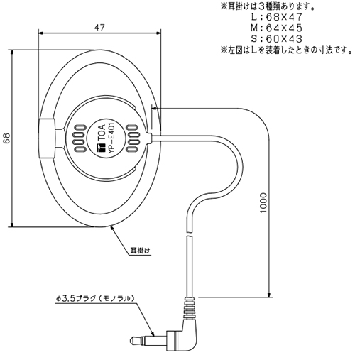 ●メーカー…TOA●型番…YP-E401●EA790AF-22用イヤホン●耳掛型イヤホン●コード長…1m●端子…φ3.5mmモノラルプラグ●参考在庫数・商品詳細・サイズ情報はメーカー(参考)URLからもご確認いただけます。 ●最小出荷単位: 1