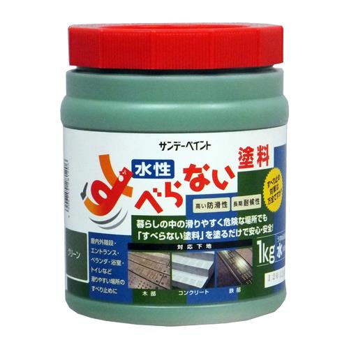 ●カラー…グリーン●容量…1kg●乾燥時間…約45分(20度)約1.5時間(冬期)●塗布面積…約2~3m2(1回塗り)●サイズ…φ140×105(H)mm●容器・キャップ材質…プラスチック●うすめ液…水道水(用具の洗浄も)●水性滑り止め塗料です。●密着性、耐摩耗性が良く、滑りやすい床面の滑り止めに最適です。●水性の無機系塗料なので、耐候性に優れています。●コンクリート、モルタル、木部、鉄部などのすべりやすい場所にお使いください。●屋内外の階段、エントランス、ベランダ、浴室(ユニットバス、浴槽は除く)、トイレなどすべり止めにお使いください。●別売りのパターンシートをご使用いただくと、簡単に点字ブロックのような丸パターン、亀甲パターンのパターン仕上げが可能になります。●参考在庫数・商品詳細・サイズ情報はメーカー(参考)URLからもご確認いただけます。 ●最小出荷単位: 1