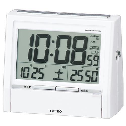 ●メーカー…セイコー(SEIKO)●型番…DA206W●周波数…40/60kHz自動選局●電源…単3電池×2本(付属)●サイズ…122(W)×62(D)×108(H)mm●重量…330g●材質…プラスチック枠 白パール塗装前面:プラスチック●電池寿命…約1年間●温度表示…測定範囲:0~40℃測定精度:±2℃●湿度表示…測定範囲:25~85%RH測定精度:±8%(25℃)●注意…付属電池はテスト電池ですので新しい電池をご購入下さい。●電波受信機能●電波修正機能(40kHz/60kHz自動選局・受信OFF機能つき)●音声アラーム…アラーム(目覚まし)を人の声でお知らせします●スヌーズ付…アラームを止めても数分後に再び鳴り出します。寝坊の心配がありません。●音量切替(大・小)…メロディやアラームの音量の切替ができます●アラームモニター機能…アラーム音をアラームセット時刻以外にも聞くことができます●ライト付…ライトで文字板面を照らします●2099年までのフルオートカレンダー機能…うるう年でも修正がいらないカレンダーです●メロディ再生…時刻、カレンダー、時報、温度・湿度、アラームセット確認等をお知らせします(日本語・英語切替)。●音声報時(時刻・カレンダー・温湿度)●アラームオートストップ機能(約5分間)●12時間制/24時間制切替式●オートスピーキング機能(1分毎に15分間)●バイリンガル(英語・日本語)切替●参考在庫数・商品詳細・サイズ情報はメーカー(参考)URLからもご確認いただけます。 ●最小出荷単位: 1