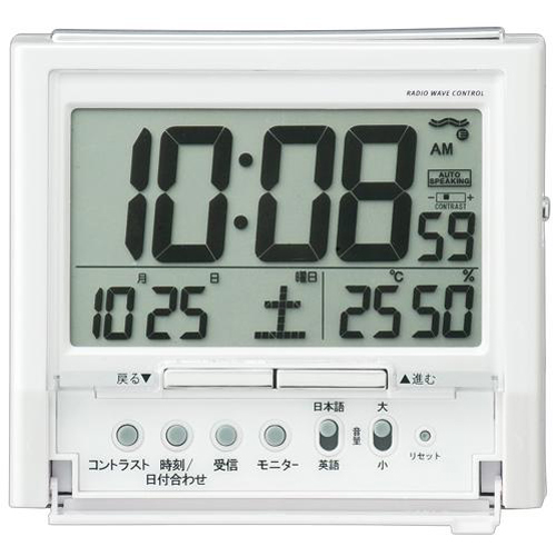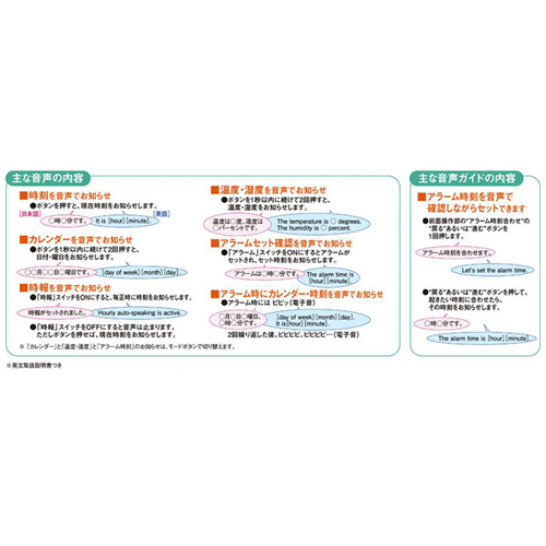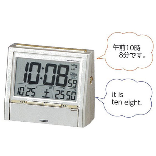 さまざまなシーンで活躍する クリアな音質と見やすい文字の音声時報クロック新登場日本語だけではなく、英語でもお知らせする、ユニバーサルデザイン発想のクロックです