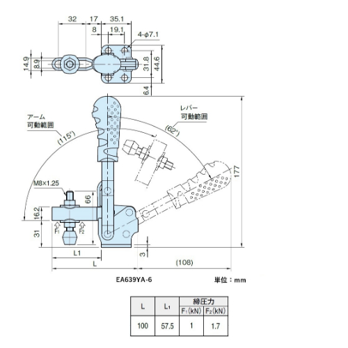 ●メーカー…イマオコーポレーション●型番…ST-VTC207U●全高…177mm●全長…100~208mm●取付金具サイズ…44.6×35.1mm●最大締付能力…173kg●アーム可動範囲…0~115°●レバー可動範囲…0~62°●重量…380g●材質…本体・アーム:SPCC(亜鉛メッキ)グリップ:ポリ塩化ビニルボルト・ナット:SUM41(亜鉛メッキ)パッド(クランプ部):クロロプレンゴム(CR)●立型トグルクランプ●垂直レバー・下方押え型●クランプ位置調整可能●RoHS対応品●参考在庫数・商品詳細・サイズ情報はメーカー(参考)URLからもご確認いただけます。 ●最小出荷単位: 1