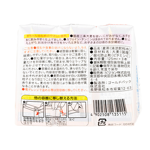 ●入数:3本●内容量:125mL●カロリー:1本当たり0kcal●1カ月~※発育には個人差がございますので、表示の適正年齢は参考としてください。●容器形状:紙パック●アレルギー物質(28品目)を含む原材料を使用しておりません。●※商品の改訂などにより、お手元の商品と記載内容が異なる場合がございます。必ずお手元の商品を確認してから、お召し上がりください。●メーカーの都合によりパッケージや仕様などが変更になる場合がございますので、あらかじめご了承ください。 ●最小出荷単位: 1