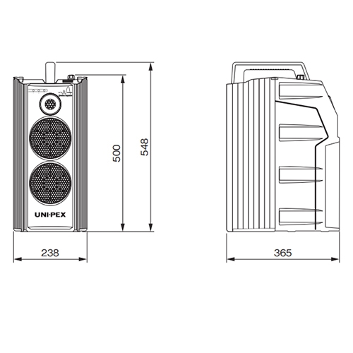 ●メーカー…ユニペックス(UNI-PEX)●型番…WA-872CD●SD/USB…有●CD…有●800MHz帯ワイヤレスアンプ●電源…AC100V 50/60Hz、または単2アルカリ電池×10本、または専用ニカド蓄電池(WBT-2001)●定格出力…AC時:40W(最大出力60W)DC時:22W(最大出力30W)●消費電力…30W●電池持続時間…アルカリ電池:約5時間、ニカド電池:約3.5時間●周波数特性…50kHz~15kHz(編差-2dB±3dB)●ひずみ率…5%以下(1kHz定格時)●信号対雑音比…70dB以上●ライン出力…0dBV±3dB、1kΩ、不平衡(3極大形単頭ジャック)●受信周波数…806.125MHz~809.750MHz●使用温度範囲…0度~+40度●外装材質…ABS樹脂(ケース)●サイズ…238(W)×365(D)×548(H)mm●重量…約10.2kg●電池別売●ワイヤレスマイクは別売です。●UNI-PEXの統合音響技術であるARISETMテクノロジーを搭載。これまでの音響設計技術をあらゆる角度から見直し、これまでにない音場表現を実現しました。●ダブルウーハーにソフトドームツィーターを組み合わせた2ウェイ3スピーカーシステムを新設計のデジタルアンプによってドライブ。定格40Wの大出力と高音質を実現しました。●雨など水の飛まつがかかる状況でも安心して使用できます。●チューナーは周波数安定度の高いPLLシンセサイザー方式を採用し、30チャンネルの中から任意のチャンネルを選択でき混信のトラブルがなくご使用になれます。●ダイバシティは音切れを起こすデッドポイント現象を解決し、安定した良好な受信が行えます。●電源はAC100V、乾電池(単2形)10本、ニカド蓄電池と外部DC電源(DC12V)を使用できます。乾電池は交換が簡単にできる電池ケースを採用しています。●使用する状況に応じて、最適なトーン(音質)に設定することができます。設定できるトーンは4種類です。●カラオケ用途などに役立つエコー機能を搭載。ワイヤレスマイクと有線マイクにエコーをかけられます。●入力感度切換え付の外部入力を装備。各種プレーヤー、マイクや楽器など、さまざまな外部ソースを入力可能です。ラインレベル対応のステレオ入力も備えており、各種プレーヤーも入力できます(本機内部でモノラル変換されます)。これらの外部音源とマイク音声はミキシング放送できます。●電源スイッチとオプションユニット部を保護カバーでしっかりガードした安心設計です。●RoHS対応●IPX4(防滴形)●参考在庫数・商品詳細・サイズ情報はメーカー(参考)URLからもご確認いただけます。 ●最小出荷単位: 1
