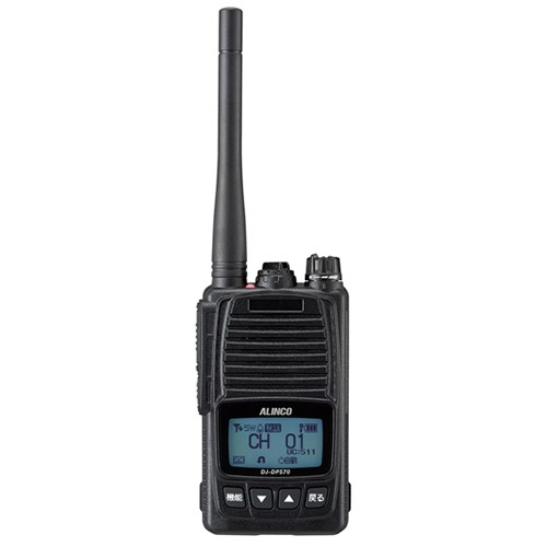 ●メーカー…アルインコ(ALINCO)●型番…DJ-DPS70KA●通信方法…デジタル交互通話(単信)方式●送信周波数…351.2000 ~ 351.38125MHz(30ch)●受信周波数…351.16875 ~ 351.38125MHz30ch+5ch(上空用チャンネル S1 ~ S5)●変調方式…4値FSK(電波型式F1C、F1D、F1E、F1F)●チャンネル数…30ch(+5ch/上空用チャンネル受信のみ)●送信出力…5W/2W/1W 切り替え式(偏差:+20%、-50% / アンテナインピーダンス:50Ω)●受信感度…-5dBμ(BER 1%)●受信方式…ダブルスーパーヘテロダイン●低周波出力…700mW以上(最大時)●定格電圧…7.2V(電池端子)●消費電流…送信時:2.0A以下(5W)/1.2A以下(2W)/0.9A以下(1W)受信時:500mA以下(音声出力時)●使用温度範囲…-20℃~+60℃(充電時の温度範囲:+10℃~+45℃)●防水・防塵…IP67相当(耐塵・防浸)●電源…リチウムイオンバッテリー●連続使用時間…11時間(バッテリーセーブオン時15時間)●サイズ…55.8(W)×32.5(D)×95.8(H)mm(アンテナ長:約100mm)●重量…約244g(リチウムイオンバッテリー装着時)●付属品…リチウムイオンバッテリーパック、アンテナ、ベルトクリップ、シングル急速充電スタンド、充電専用ACアダプター、ハンドストラップ、申請書類一式●注意事項…AMBE方式以外のデジタル登録局とは通信できません。●※登録申請必要について…使用に際して事前に有償の申請を行い、登録状(15日程度で発行される)を受ける必要があります。1台を登録する個別と複数を登録する包括申請があり、登録状は5年ごとに更新が必要です。また、1年ごとに電波利用料を納付する義務があり、総務省より送られてくる納付告知書に金額や納付方法が明記されています。申請に関する資料は製品に付属します。●登録局対応●免許・資格不要(登録申請必要)●他メーカーとの通信可●業務連絡、レジャー、防災連絡にも。使いやすい操作性を追求した、ハイパワートランシーバーの決定版。●大音量700mWのオーディオ出力●個別通信では特定の通話だけを録音させる等、細かい設定ができる35分の通信録音機能●CH番号、受信音レベルのほか「キーロック中です」「電池が減りました」「緊急」 のような案内もできる多彩な音声ガイダンス●独自の秘話キーを追加、S70シリーズだけしか通話できない高セキュリティ秘話(従来コード32,767×強化キー15=491,505通り)●急に倒れたとき信号を自動発報するなど、ニーズに合わせてプログラムできるショックセンサー機能(マンダウン機能)●参考在庫数・商品詳細・サイズ情報はメーカー(参考)URLからもご確認いただけます。 ●最小出荷単位: 1