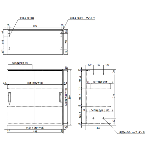 900x400x 890mm収納庫 引き戸