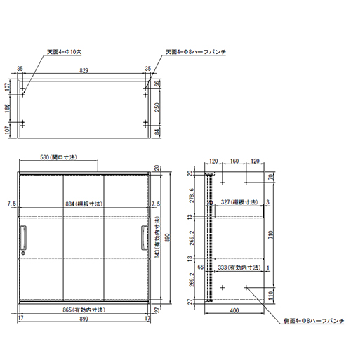 900x400x 890mm収納庫 3枚引き戸