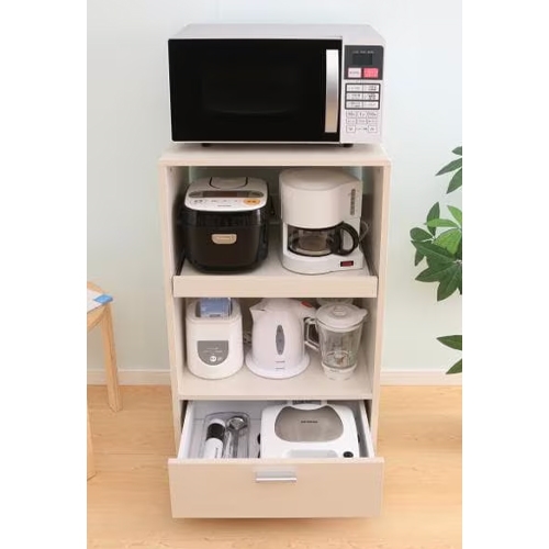 ●メーカー…アイリスオーヤマ(IRIS OHYAMA)●型番…KBD-500●※注意※…【お客様組立品】●サイズ(W×D×H)mm…500×370×938●重量…20kg●スライド棚サイズ…440×350mm●耐荷重…全体:43kgスライド棚:10kg天板:15kg引出:3kg●材質…本体:プリント紙化粧繊維板(MDF)脚:ポリプロピレン●引出し内寸…419×286×95(H)mm●背部分がオープンになっており、配線が簡単です。●省スペースに家電を設置できます。●参考在庫数・商品詳細・サイズ情報はメーカー(参考)URLからもご確認いただけます。 ●最小出荷単位: 1