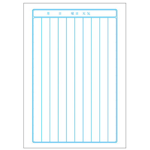 ●外形寸法(縦)[mm]:210●外形寸法(横)[mm]:148●枚数[枚]:30●罫内容:タテ罫12mm●行数[行]:10●製本形式:糸綴じ●対象学年:2~5年●規格:A5●種別:にっきちょう●製造国:日本 ●最小出荷単位: 1