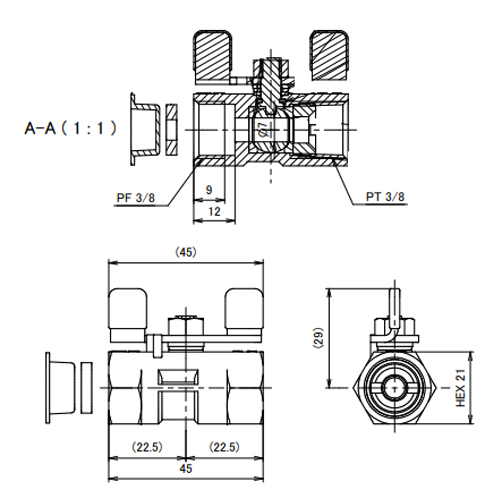 G3/8xRc3/8ボールバルブ(SUS製/蝶ハンドル)