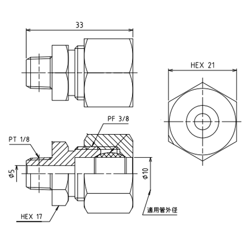 ●メーカー…アソー(ASOH)●型番…RS-1110●取付ねじ…R1/8’’●適用管外径…10mm●本体六角対辺…17mm●ナット六角対辺…21mm●全長…33mm●使用圧力…3.45MPa以下●使用温度…-50~150℃●使用流体…空気・水・油●材質…真鍮●入数…1個●外ねじリングジョイント●銅管と機器、または装置を接続するためのリング式のジョイントです。●専用工具を使わずに接続が可能です。●リング玉1個付属●参考在庫数・商品詳細・サイズ情報はメーカー(参考)URLからもご確認いただけます。 ●最小出荷単位: 1