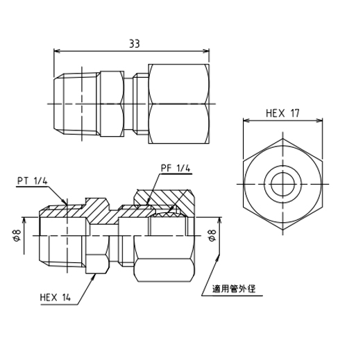●メーカー…アソー(ASOH)●型番…RS-1208●取付ねじ…R1/4’’●適用管外径…8mm●本体六角対辺…14mm●ナット六角対辺…17mm●全長…33mm●使用圧力…3.45MPa以下●使用温度…-50~150℃●使用流体…空気・水・油●材質…真鍮●入数…1個●外ねじリングジョイント●銅管と機器、または装置を接続するためのリング式のジョイントです。●専用工具を使わずに接続が可能です。●リング玉1個付属●参考在庫数・商品詳細・サイズ情報はメーカー(参考)URLからもご確認いただけます。 ●最小出荷単位: 1