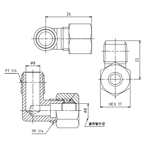 ●メーカー…アソー(ASOH)●型番…RL-1208●取付ねじ…R1/4’’●適用管外径…8mm●ナット六角対辺…17mm●使用圧力…3.45MPa以下●使用温度…-50~150℃●使用流体…空気・水・油●材質…真鍮●入数…1個●リングエルボ●銅管と機器、または装置を接続するためのリング式のエルボタイプのリングジョイントです。●専用工具を使わずに接続が可能です。●リング玉1個付属●参考在庫数・商品詳細・サイズ情報はメーカー(参考)URLからもご確認いただけます。 ●最小出荷単位: 1