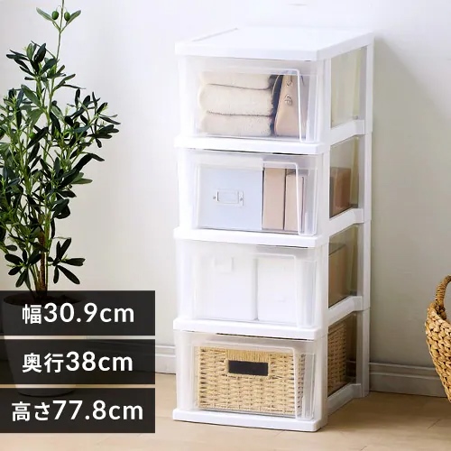 ●メーカー…アイリスオーヤマ(IRIS OHYAMA)●型番…NSS-324●サイズ(W×D×H)mm…309×380×778●重量(g)…3030●材質…天板・フレーム・引き出し:ポリプロピレンパイプ:塩化ビニル被覆鋼管●カラー…ホワイト/クリア●耐荷重…天板:2kg引き出し1段あたり:4kg ●段数…4段●内寸…233(W)×328(D)×158(H)mm●工具不要で、簡単に組み立てができます。●一体型フレームでぐらつきません。●クローゼットやランドリーのすき間を有効活用できます。●引き出しにはストッパーが付いており、落下を防ぎます。●参考在庫数・商品詳細・サイズ情報はメーカー(参考)URLからもご確認いただけます。 ●最小出荷単位: 1