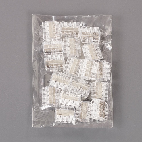 ●差込線数…4●カラー…クリア●入数…20●定格…20A 300V●適用電線…銅単線:φ1.2・φ1.6・φ2.0mmIV7本より線:1.25・2mm2●材質…難燃性プラスティック V0●サイズ…16.5×19.4×7.7mm●RoHS対応品●差込線数によって色分けされているため、穴数が一目でわかる作りになっています。●透明なボディで接続確認がしやすくなっています。●参考在庫数・商品詳細・サイズ情報はメーカー(参考)URLからもご確認いただけます。 ●最小出荷単位: 1