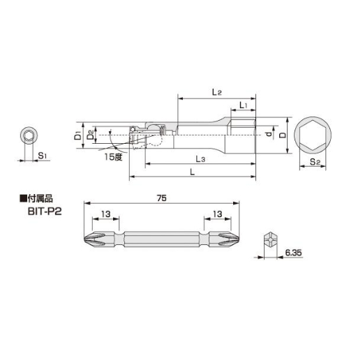 ●メーカー…TONE●型番…2BNU-14●対辺(mm)…14●外径(mm)…20●全長(mm)…96●サイズ(mm)…D1:20D2:21D3:13.9L1:14L2:60L3:85d:13.5●六角シャンク…1/4’’●付属…ドライバービット×1本●重量(g)…100●6ポイント●インパクトドライバー対応●固定と首振の2通りの使い方が出来ます。●ビット交換可能。●建築用金具・型枠金物等の組立、解体作業に最適。●各種産業用ボルト・ナットの着脱に最適。●折れてもビット交換可能(ソケットを寿命まで使える)●市販の両頭ビットが使用可能。●判別しやすいサイズ別のカラーバリエーション●首振り角度…15°●参考在庫数・商品詳細・サイズ情報はメーカー(参考)URLからもご確認いただけます。 ●最小出荷単位: 1