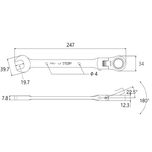 ●メーカー…トップ工業(TOP)●型番…FRC-19LK●サイズ(mm)…19●厚み(mm)…12.2●全長(mm)…247●重量(g)…255●材質…Cr-v●ポイント数…12●首振り角度を保持したままでアクセス可能な首振りロック仕様です●奥まった、込み入った場所での作業に最適です●首振り角度は180°、ガッチリ8段階(22.5°毎にロック可能)●ギア数72で5°の細かい送り角度でラチェットが駆動します●参考在庫数・商品詳細・サイズ情報はメーカー(参考)URLからもご確認いただけます。 ●最小出荷単位: 1
