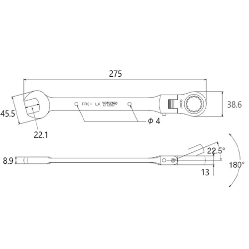 ●メーカー…トップ工業(TOP)●型番…FRC-21LK●サイズ(mm)…21●厚み(mm)…13●全長(mm)…275●重量(g)…370●材質…Cr-v●ポイント数…12●首振り角度を保持したままでアクセス可能な首振りロック仕様です●奥まった、込み入った場所での作業に最適です●首振り角度は180°、ガッチリ8段階(22.5°毎にロック可能)●ラチェット部は本締め出来る強度があります●参考在庫数・商品詳細・サイズ情報はメーカー(参考)URLからもご確認いただけます。 ●最小出荷単位: 1