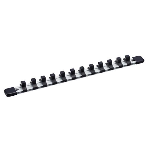 ●メーカー…TONE●型番…SH1312L●差込角…3/8’’●クリップ数…12●全長(mm)…350●サイズ(mm)…D:26H:23●重量(g)…104●ソケット、ジョイント類をスッキリ整理することができるアルミレールのソケットホルダー。●クリップは樹脂製(鋼球付き)でソケットの取り外しが容易です。●ソケットを装着したままレール上をスライドできます。●両端にねじ穴付きで壁掛けやデスクへの固定が可能です。●参考在庫数・商品詳細・サイズ情報はメーカー(参考)URLからもご確認いただけます。 ●最小出荷単位: 1