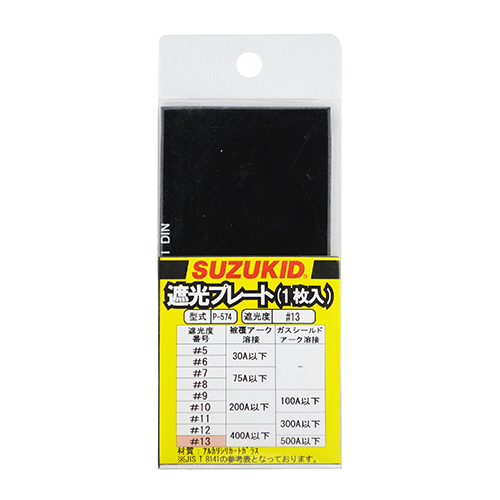 ●メーカー…スター電器製造(SUZUKID)●型番…P-574●遮光度…#13●サイズ…105(W)×3(D)×50(H)mm●材質…アルカリシリカートガラス●重量…40g●用途…交換用遮光プレート●入数…1枚●適用品番…EA800PV-1・-2・-3・-31・-32●被服アーク溶接:400A以下、ガスシールドアーク溶接:500A以下までの溶接作業に使用可能です。●アーク溶接時の強い光を遮光、目の保護をするプレートです。●参考在庫数・商品詳細・サイズ情報はメーカー(参考)URLからもご確認いただけます。 ●最小出荷単位: 1