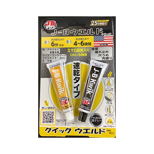 ●仕様…速乾型●耐熱温度…148℃●硬化時間…実用硬化:6分以上完全硬化:4~6時間(常温)●可使時間…4分(常温)●内容量…本剤:26.8g硬化剤:26.8g●使用温度範囲…-55~35℃●抗張力…219kgf/cm2(1cm角の鉄板2枚に塗って硬化させて水平方向に引っ張った時の値、ひっぱり強度ともいいます)●色…濃グレー●ミクロの鉄粉入りで溶接並の強度を誇り、高い耐水・耐油・耐酸性能があり、優れた接着性能を誇るエポキシ系接着剤。●完全硬化後はドリルやタップなどの切削加工や研磨・塗装・肉盛りも可能です。●25年保証については購入商品の台紙裏面に保証条件を記載していますのでご確認ください。●参考在庫数・商品詳細・サイズ情報はメーカー(参考)URLからもご確認いただけます。 ●最小出荷単位: 1