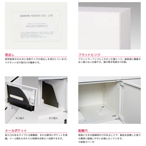 ●内寸法…415.5(W)×388(D)×340(H)mm●外寸法…900(W)×450(D)×1140(H)mm●重量…42kg●カラー…ホワイト●本体材質…スチール●ダイヤル錠タイプ●4桁の数字を合わせて施開錠できるタイプ。決めた数字での固定番号と閉めた時の数字でのみ開錠できる自由番号の切り替えができます。●使用者の表示の為に名刺サイズの見出し(6個)を添付しています。●底面に大きな配線用の穴があることで、製品を設置した後でも簡単に配線しやすい仕様になっています。(底板カバー付)●投入口のあるタイプには扉裏面にポケットを装備。メール類をためたり、小物類を効率良く収納できます。●下置の際には専用ベースが必要です。(別売)●商品は完成品です。●上下連結用のねじが1セット付属しています。●参考在庫数・商品詳細・サイズ情報はメーカー(参考)URLからもご確認いただけます。 ●最小出荷単位: 1