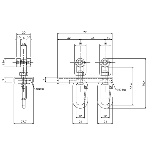 マグネットランナーフック付30mmレール片開