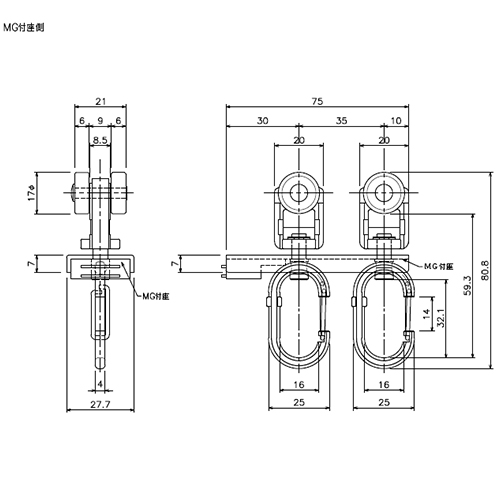 マグネットランナーフック付40mmレール両開