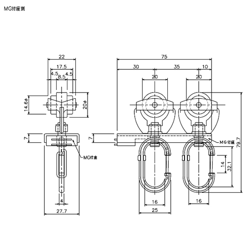 マグネットランナーフック付40mmレール両開