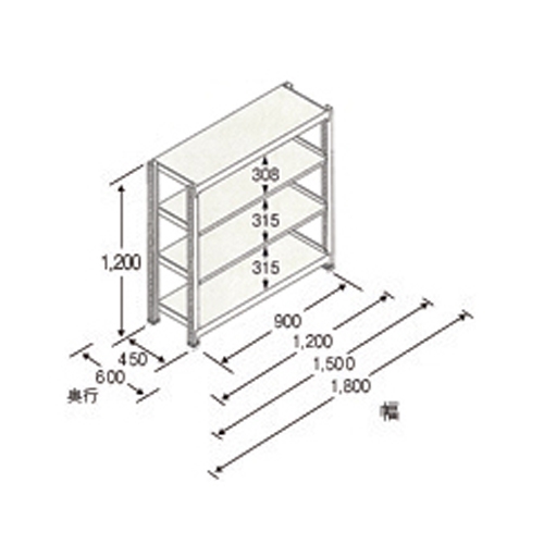 1800x600x1200mm/150kg/4段 スチール棚