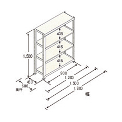 1800x450x1500mm/150kg/4段 スチール棚