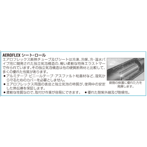 ●内径…13mm(1/2’’)●入数…4本●厚み…6mm●長さ…2m●材質…特殊エラストマー●適応温度範囲…-200℃~125℃(-57℃から硬化、必要肉厚により-200℃まで使用可能)●特性…自己消化性 難燃性(酸素指数26%以上)●チューブの内側にパウダーが吹き付けてあるので、複雑に曲がったパイプにも手早くすべるようにさし込むことができます。●既に配管済みのパイプラインに使用する時は、チューブを縦に切り込み、パイプに噛み付かせてください。切り込みは、作業現場で、ナイフ、はさみ、かみそり、はさみなどで簡単にできます。●チューブの切り口や継ぎ目は、エアロボンド(ネオプレン系接着剤)で接合します。●耐候性・耐紫外線性、耐湿性・防カビ性、耐火性・低発煙性、耐酸・アルカリ性、柔軟性を有しています。●-30℃の低温でも柔軟性を保つので寒冷地での施工が容易です。●参考在庫数・商品詳細・サイズ情報はメーカー(参考)URLからもご確認いただけます。 ●最小出荷単位: 1