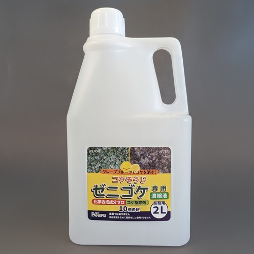 ●メーカー…パネフリ工業●容量…2.0L●成分…乳酸・酢酸、グレープフルーツ種子抽出物(GSE)●対象物…ゼニゴケ専用●効果発現まで…2~3日●散布面積…約120m2(約10倍希釈)●使用方法…・本品1に対し水9を加え、よくかき混ぜて10倍の希釈液を作ります。濃縮液のまま使用しないでください。・ゼニゴケに向け、全体が完全に濡れる程度にたっぷり散布し、そのまま放置します。・散布して2~3日後にはゼニゴケが枯れ始めます。緑色が少なくなってきたら枯れ始めたしるしです。(変化が見られない場合は再度散布してください)・10日から2週間後にはゼニゴケは完全に枯死し、その後、自然に分解されていきます。●希釈例…コケそうじゼニゴケ専用濃縮液100ml:水900mlコケそうじゼニゴケ専用濃縮液200ml:水1800mlコケそうじゼニゴケ専用濃縮液300ml:水2700mlコケそうじゼニゴケ専用濃縮液400ml:水3600mlコケそうじゼニゴケ専用濃縮液500ml:水4500ml●外壁などに染み付いた頑固なコケにスプレーするだけ。●コケ全般に使用できて、水洗いは不要です。●化学合成成分を含まないので、環境にやさしく安心です。●コンクリート・レンガ・石材などの表面を傷めません。●濃縮タイプ●非農耕地専用●駆除が難しいゼニゴケを強力に枯らす駆除剤です。●参考在庫数・商品詳細・サイズ情報はメーカー(参考)URLからもご確認いただけます。 ●最小出荷単位: 1