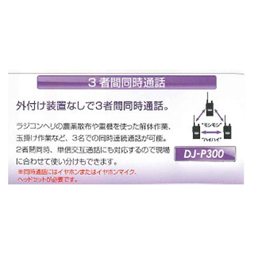 ●メーカー…アルインコ(ALINCO)●型番…DJ-P300●通信方式…交互通話(単身)方式二者・三者同時通話(複信)方式●チャンネル数…47ch(単信20ch/半複信27ch)●電源…単3アルカリ乾電池2本(別売)(EA758YA-3A)リチウムイオンバッテリーパック(別売)(EA790AX-11)●送信出力…10mW/1mW●連続使用時間…同時通話:約6時間交互通話:約40時間●ボディ材質…ポリカーボネート●サイズ…55(W)×29.3(D)X98.8(H)mm●重量…120g●付属品…ベルトクリップ、ハンドストラップ●品名…トランシーバー●注意事項…二者・三者同時通話でお使いの場合はイヤホンマイク(別売)が必要です。●片方・同時通話兼用●免許・資格不要●IP67●参考在庫数・商品詳細・サイズ情報はメーカー(参考)URLからもご確認いただけます。 ●最小出荷単位: 1