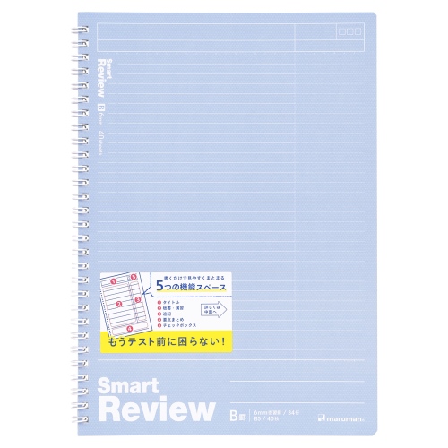 ●外形寸法(横)[mm]:187●外形寸法(縦)[mm]:257●行数[行]:34行●罫内容:B罫6mm 復習罫●枚数:40枚●綴じ仕様:スパイラル綴じ●表紙色:ライトブルー●規格:B5●製造国:日本 ●最小出荷単位: 1