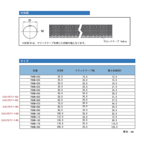 ●メーカー…デンカエレクトロン●型番…YHKM-80●用途…後入れ式油圧ホース保護チューブ●長さ…10m●折径…80mm●最大結束線径…50mm●適合ホースサイズ…外径:42.7~48.6mm(インチ2ブ~インチ4ブ)●マジックテープ幅…20mm●材質…ナイロンマルチフィラメント●使用温度範囲…-60~125℃●カラー…黒●マジックテープ止めで、強力面ファスナー開閉式なので現場で簡単に取り付け可能●ナイロン糸で編組した柔軟性に優れたスリーブです●建設機械や工作機械などの油圧ホースの保護に適しています。●編目が細かいため、作動油の破裂を防止できます。●軽量で取り付けが容易でサニーホース等の取り付けと比較して作業時間を短縮できます。●耐候、耐熱、耐薬品、難燃と耐久性、耐摩耗性に優れています。●RoHS10対応品●参考在庫数・商品詳細・サイズ情報はメーカー(参考)URLからもご確認いただけます。 ●最小出荷単位: 1